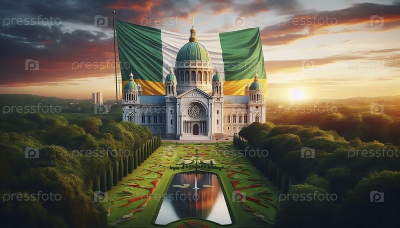 Флаг Кот-д'Ивуара в базилике Богоматери Мира, Ямуссукро, Аи generated image