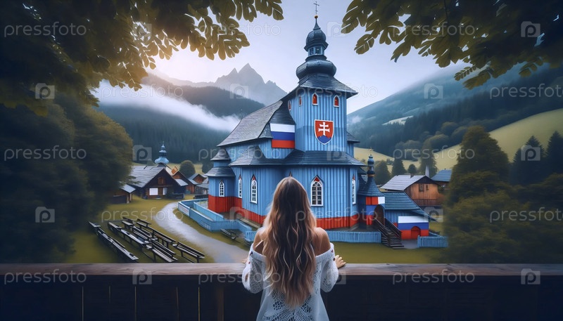 Словацкий флаг в народной деревянной архитектуре, Ai generated image A
