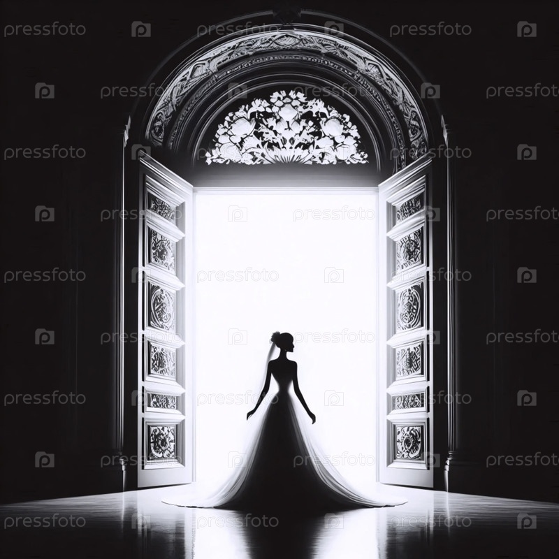 Силуэт невесты с высоким контрастом в дверном проеме, Ai generated image