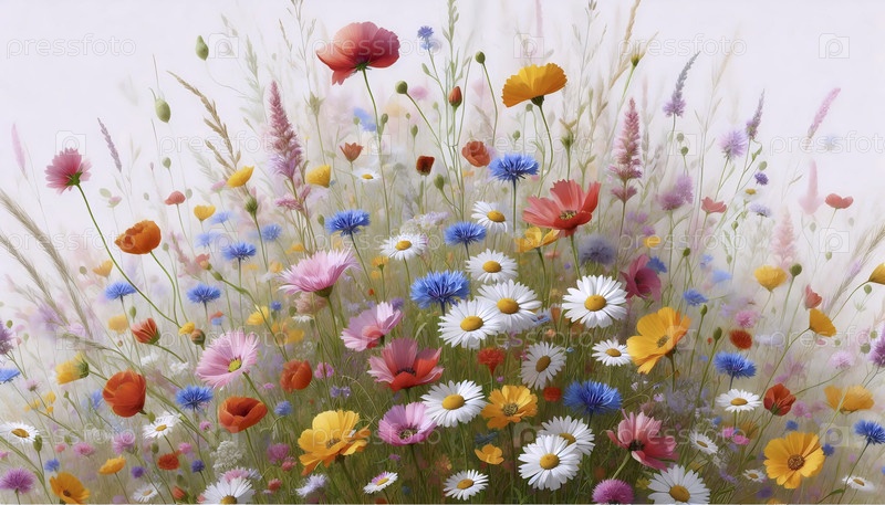 A Wildflower Garden seamless pattern, Ai generated image (Вайлдфлауэр Гарден - бесшовный шаблон в саду диких цветов), созданное изображение