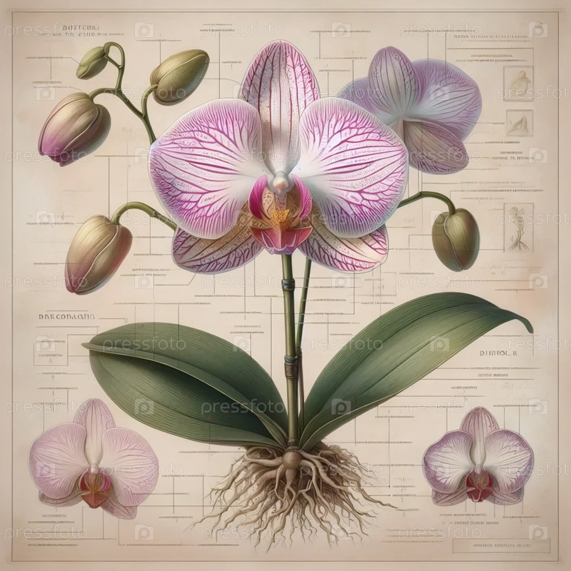 Орхидея в технике ботанической иллюстрации, Ai generated image