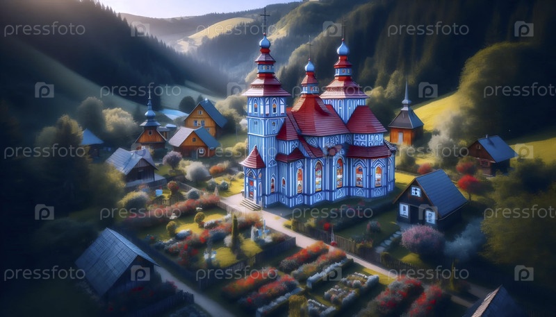 Словацкий флаг в народной деревянной архитектуре, Ai generated image A