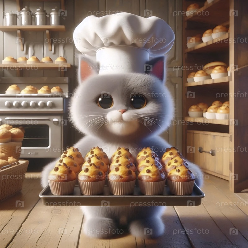 3D-рендер милого кота Персонаж пекаря, Ai generated image