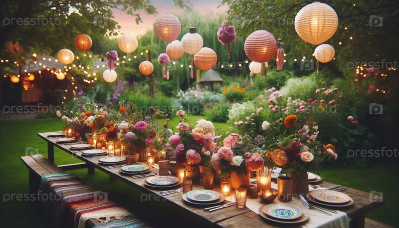 Партия в саду Бохо, Ai generated image