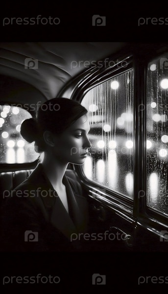 Дождливый портрет из окна такси, Ai generated image