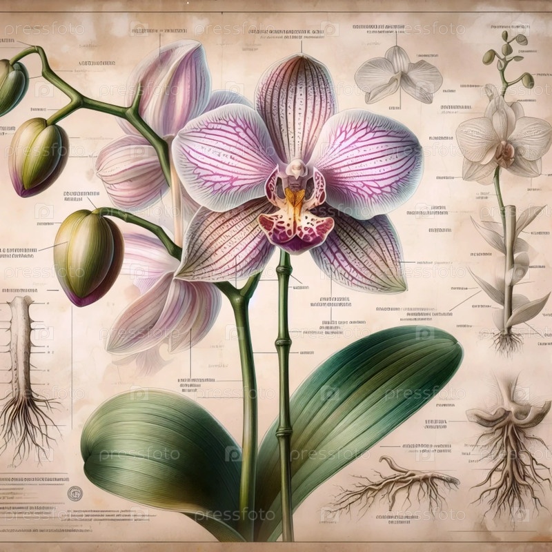 Орхидея в технике ботанической иллюстрации, Ai generated image