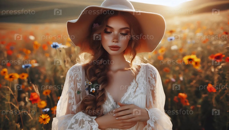 Женский портрет на поле, Ai generated image