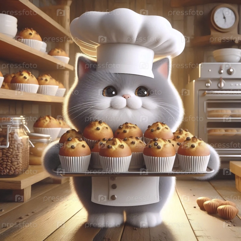 3D-рендер милого кота Персонаж пекаря, Ai generated image