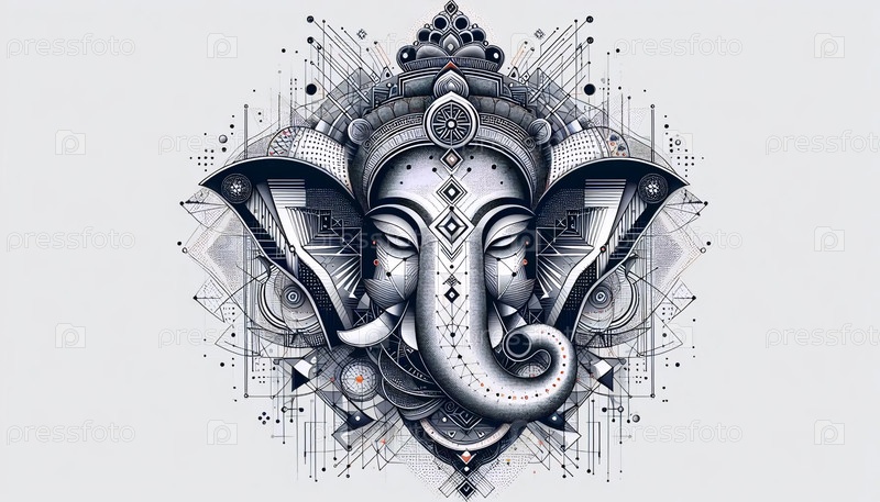 Господь Ганеша с геометрическими узорами, Ai generated image A