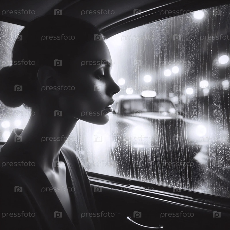 Дождливый портрет из окна такси, Ai generated image