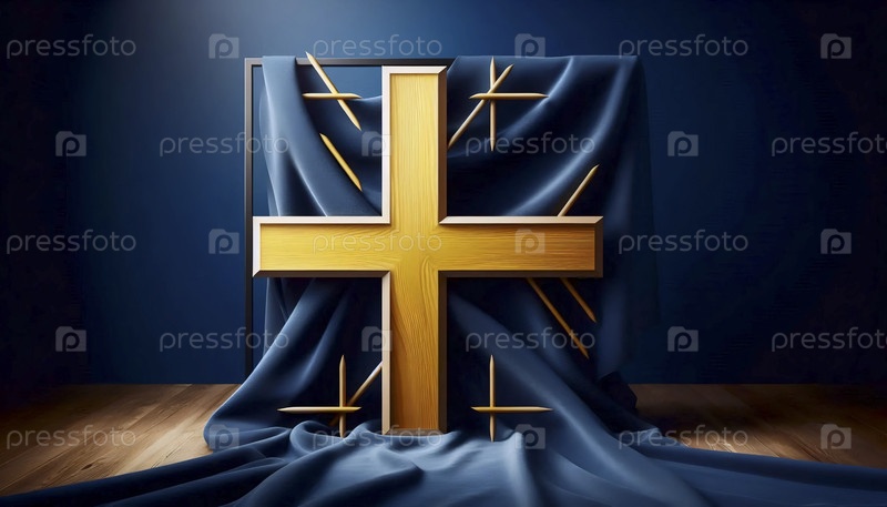 Шведский флаг в минималистическом дизайне мебели, Ai generated image