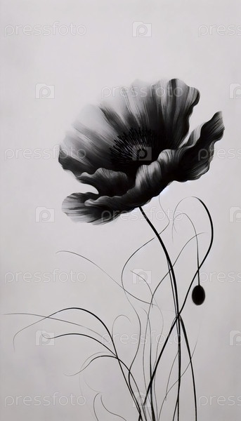 Черная цветовая фреска с абстрактным принтом мака, Ai generated image