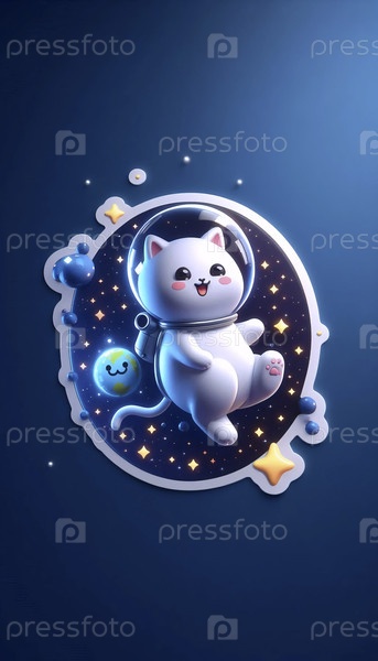 Милый 3D-наклейка кошки астронавта плавает, Ai создал изображение