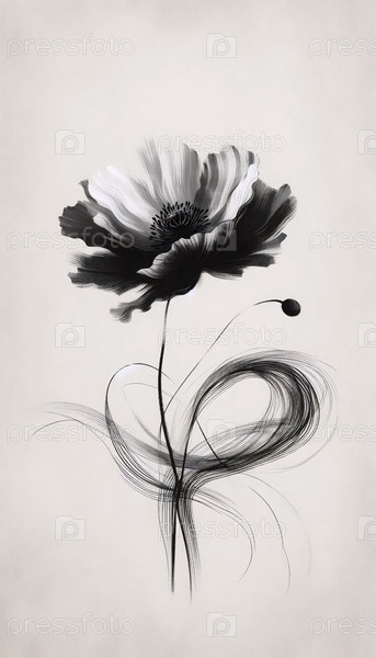 Черная цветовая фреска с абстрактным принтом мака, Ai generated image
