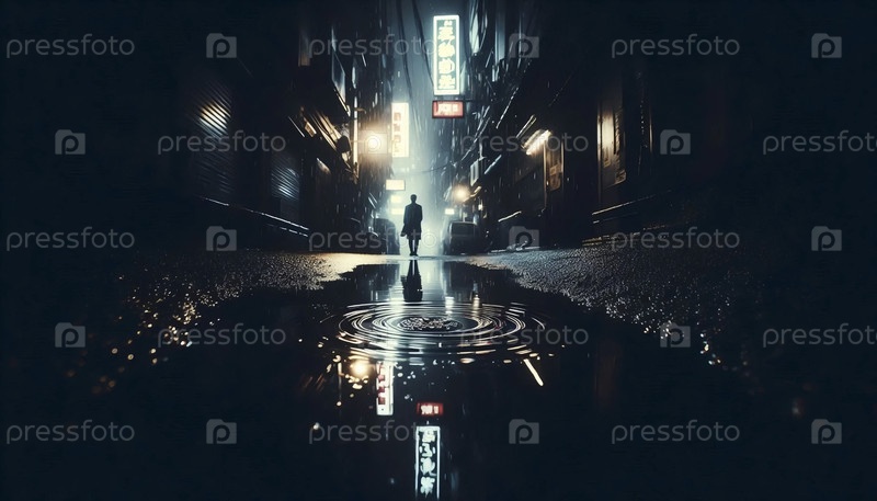 Черная печать с отражением лужи, Ai generated image