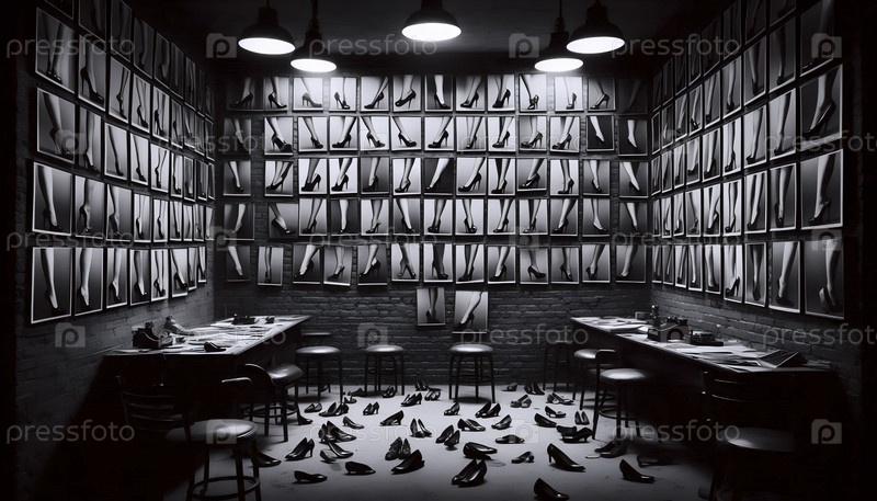 Стена доказательств детективов с фотографиями обуви, Ai generated image