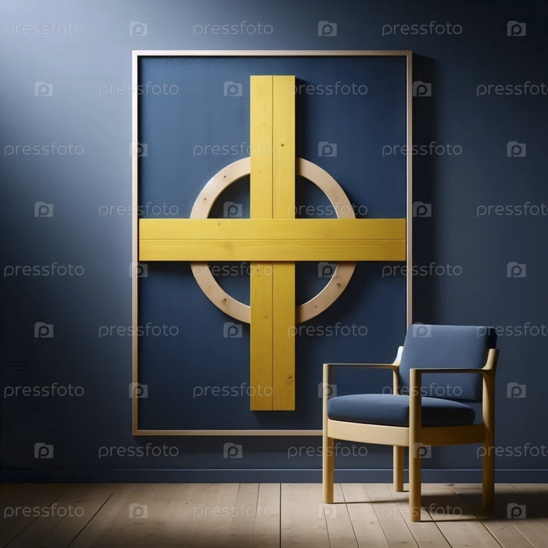 Шведский флаг в минималистическом дизайне мебели, Ai generated image