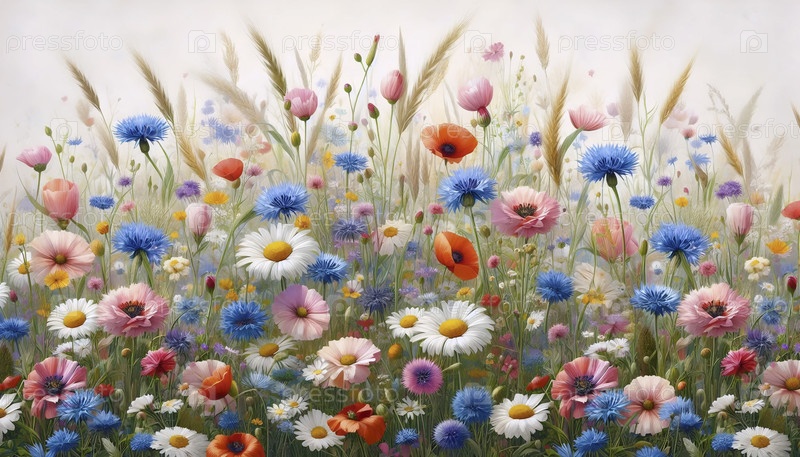 A Wildflower Garden seamless pattern, Ai generated image (Вайлдфлауэр Гарден - бесшовный шаблон в саду диких цветов), созданное изображение
