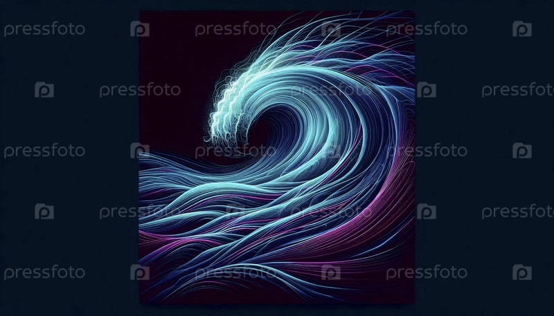 Цифровые неоновые волны художественный плакат, Ai generated image