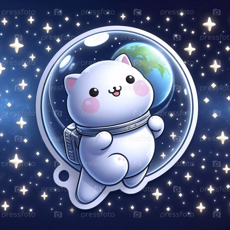Милый 3D-наклейка кошки астронавта плавает, Ai создал изображение