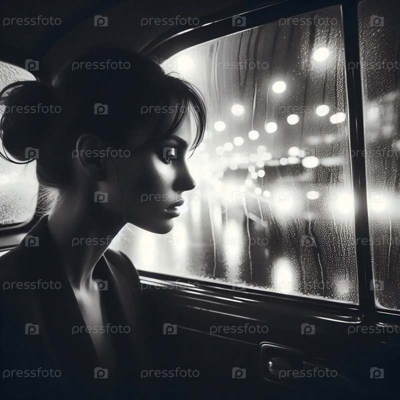 Дождливый портрет из окна такси, Ai generated image