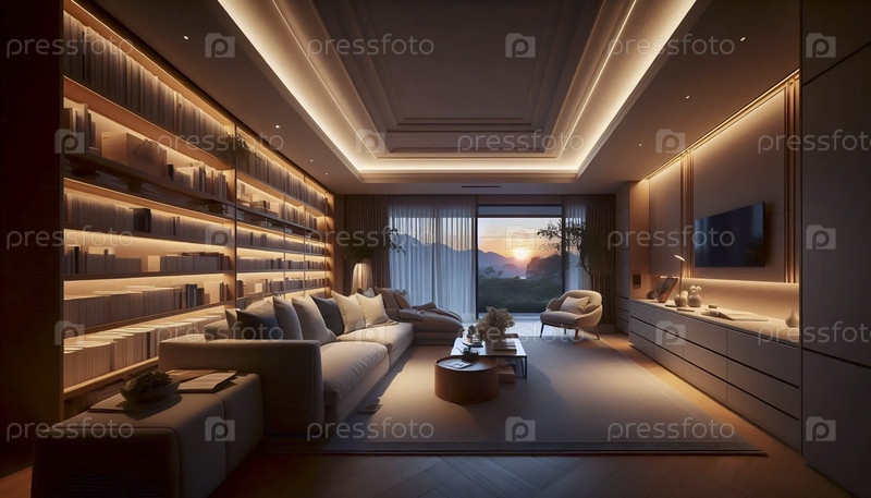Минималистическая гостиная с интегрированным умным освещением, Ai generated image