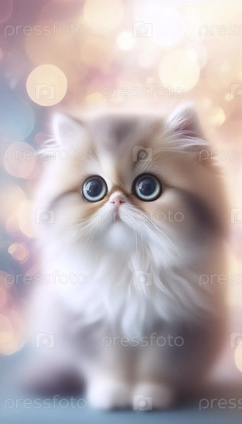 Пушистое котенок с большими глазами портрет, Ai generated image