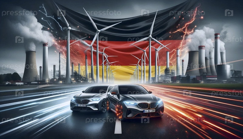 Немецкий флаг в автобане и инженерная культура, Ai generated image
