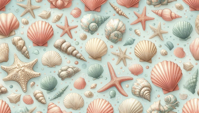 A watercolor coastal summer seashells бесшовный морской рисунок, Ai generated image
