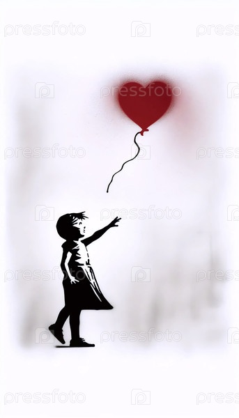 Девушка в стиле Бэнкси с художественным принтом из шара, Ai generated image
