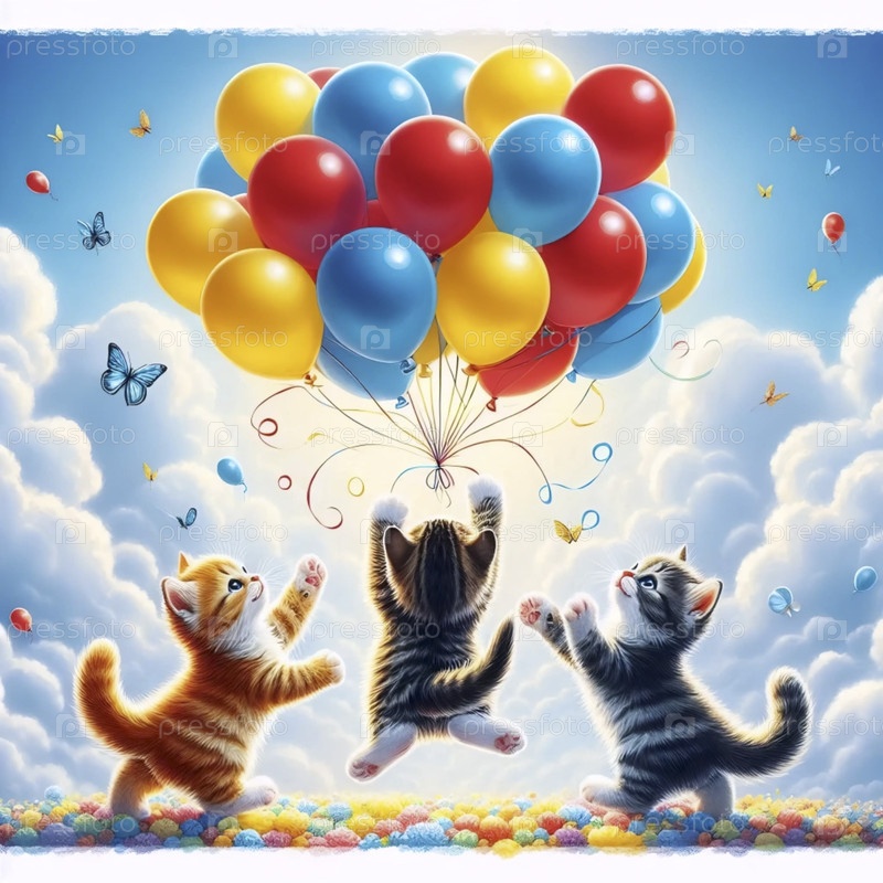 котят с воздушными шарами