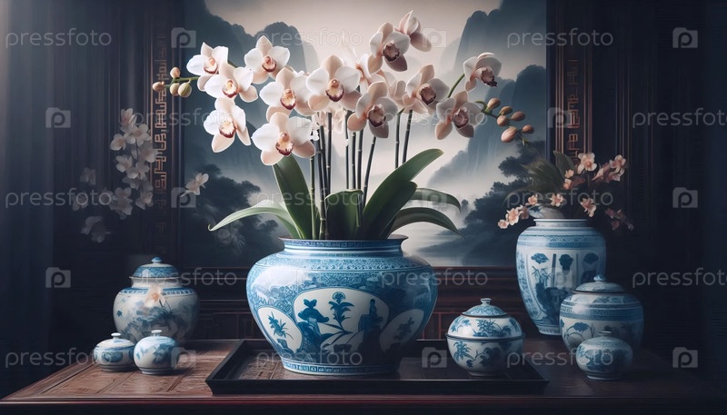 Орхидея в китайской вазе, Ai generated image