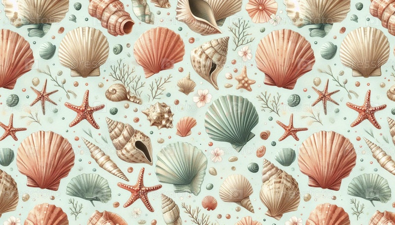 A watercolor coastal summer seashells бесшовный морской рисунок, Ai generated image