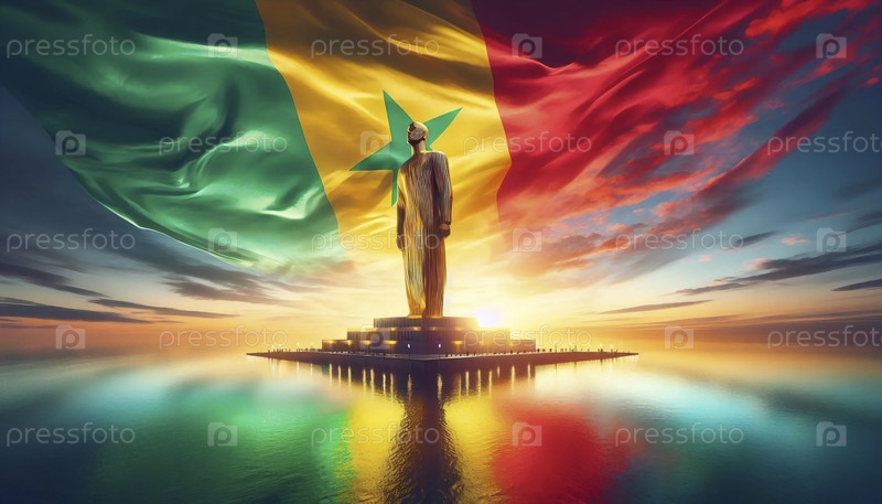 Сенегальский флаг в Дакаре Монумент африканского возрождения, Ai generated image