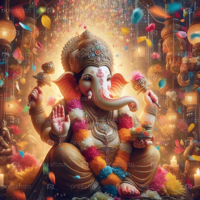 Господь Ганеша в дожде листьев, Ай создал изображение