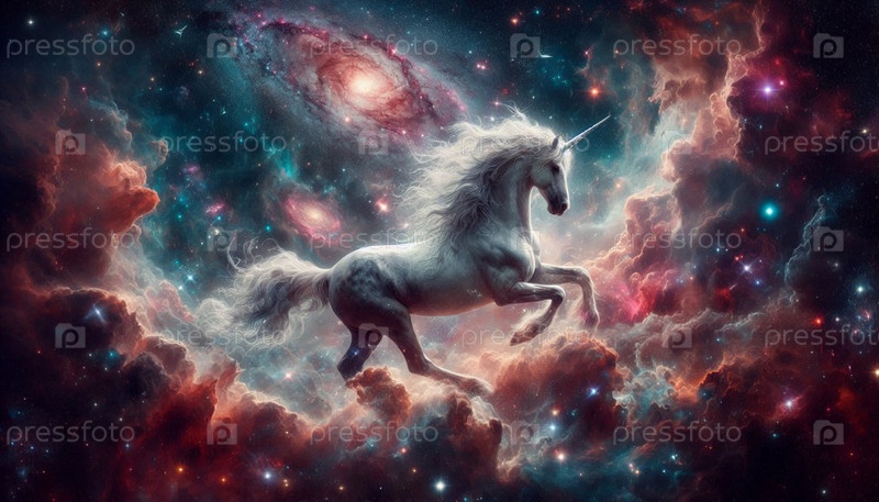 Единорог в космическом пространстве, Ai generated image