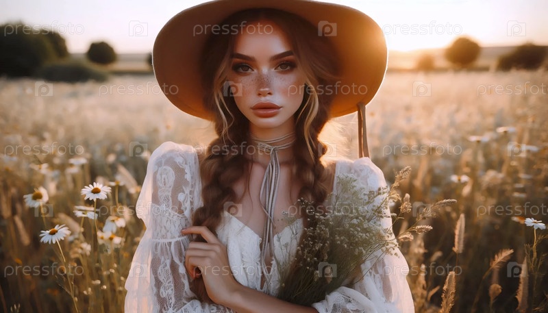 Женский портрет на поле, Ai generated image