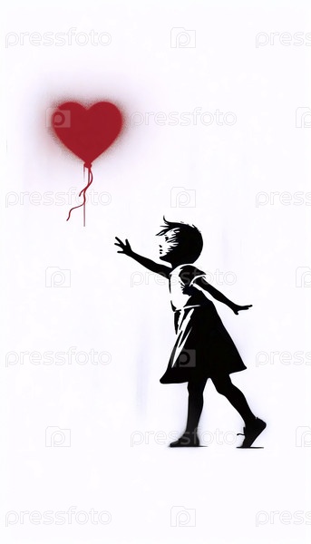 Девушка в стиле Бэнкси с художественным принтом из шара, Ai generated image