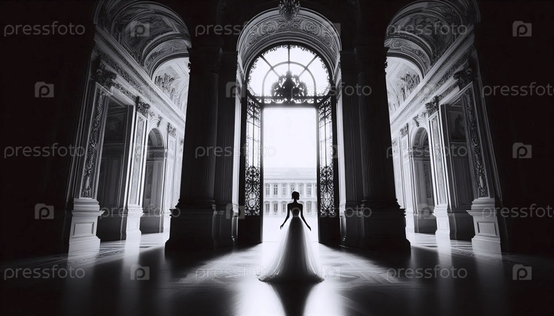 Силуэт невесты с высоким контрастом в дверном проеме, Ai generated image