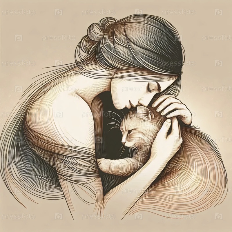 Сентиментальная кошка мама портрет художественное произведение искусства, Ai generated image