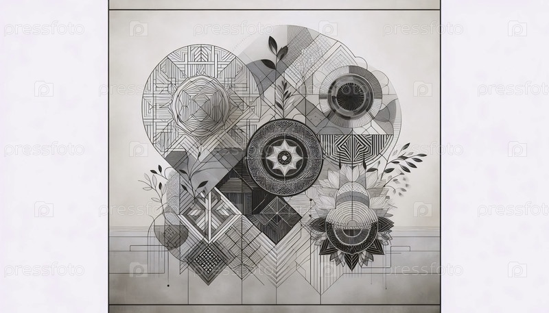 Современная бежевая и черная абстрактная композиция, Ai generated image