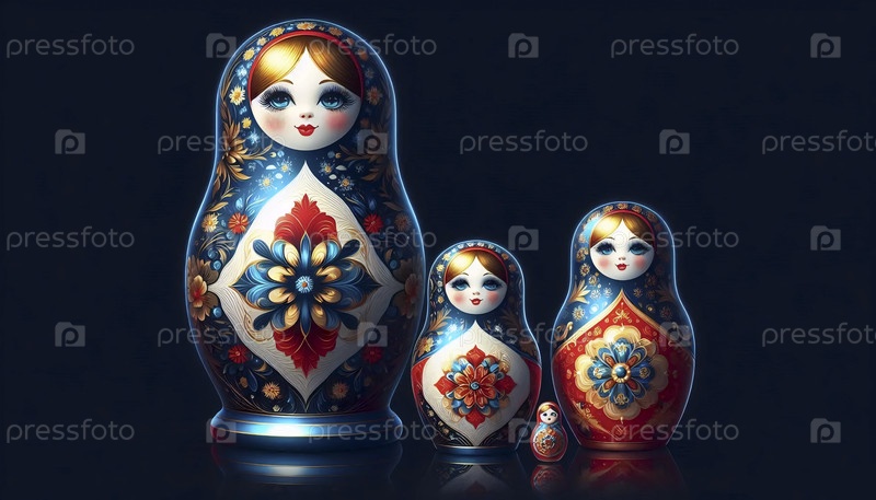 Российский флаг в традиционном искусстве куклы матриошка, Ai generated image