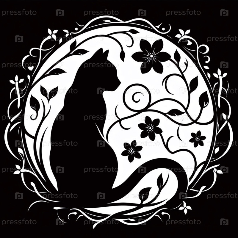 Минималистский печатный силуэт цветочного кота, Ai generated image