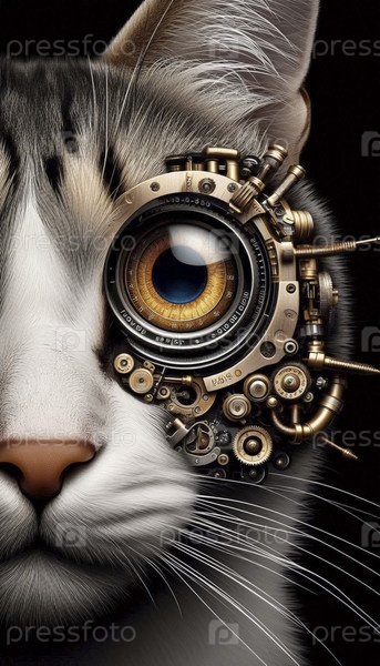 Ближайший план механического наклейки для лица steampunk cats, Ai generated image