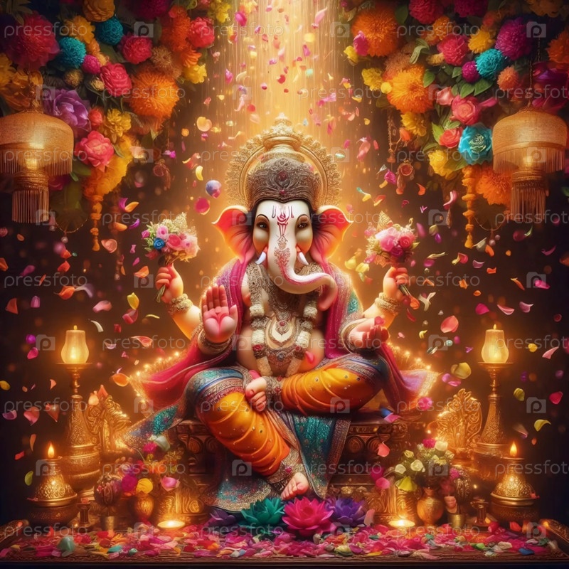 Господь Ганеша в дожде листьев, Ай создал изображение