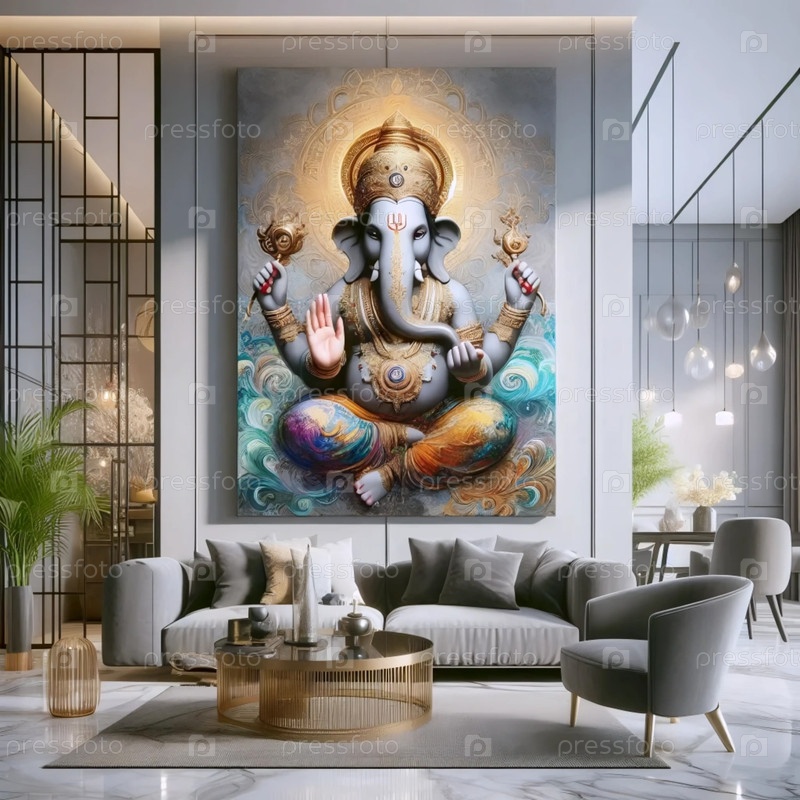 Господь Ганеша в современном интерьере, Ai generated image A