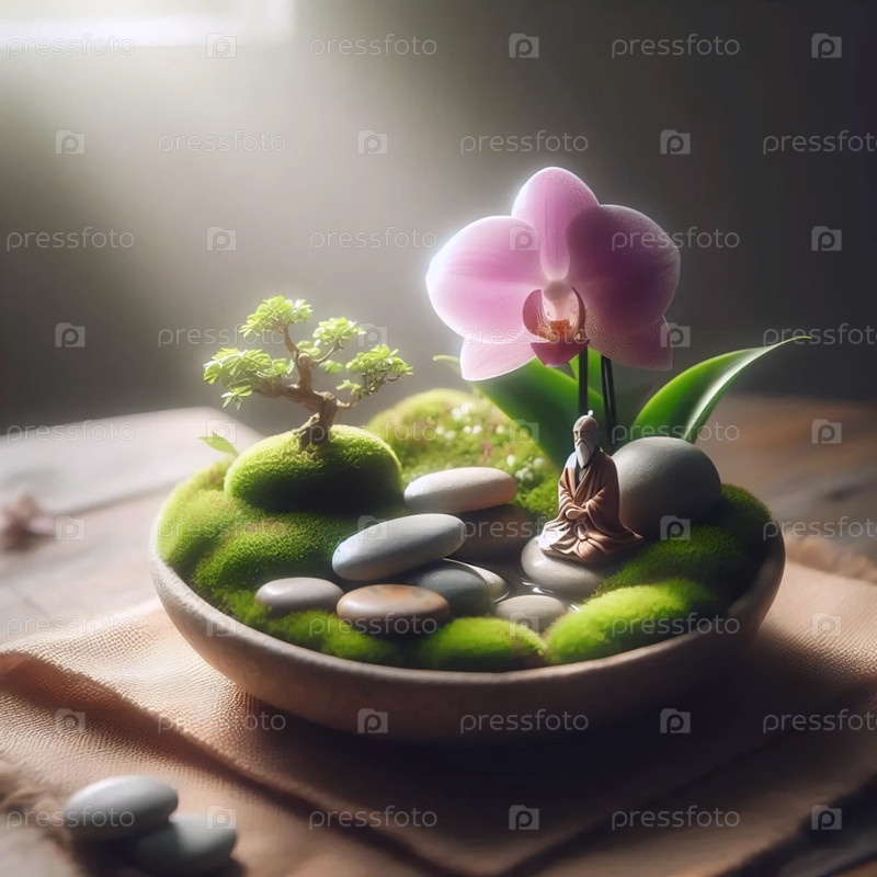 Орхидея с камнями и мхом, Ай создал изображение