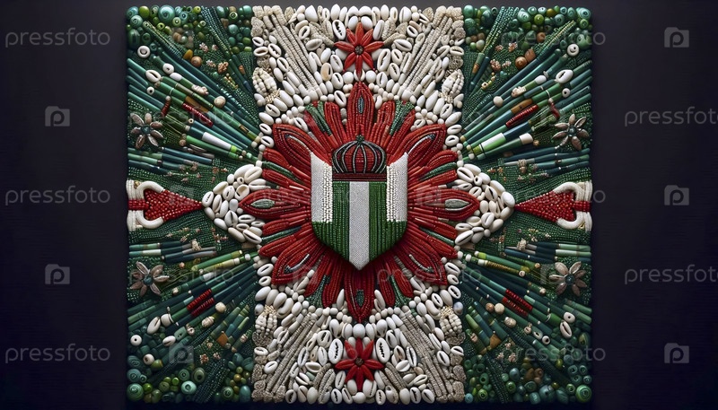 Нигерийский флаг в традиционной бусинке и искусстве йорубы, Ai generated image