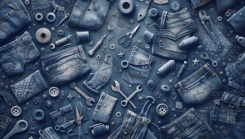 Джинсы синий цвет Образец детской комнаты, Ai generated image