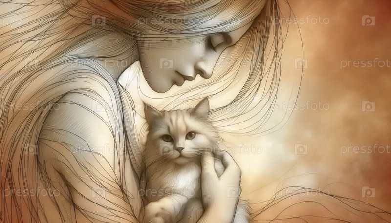 Сентиментальная кошка мама портрет художественное произведение искусства, Ai generated image